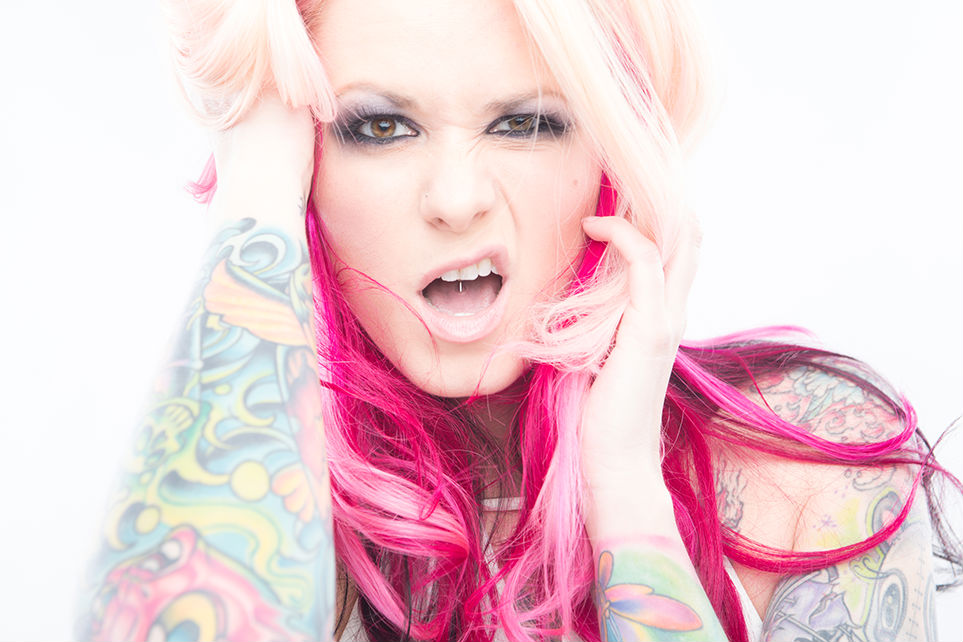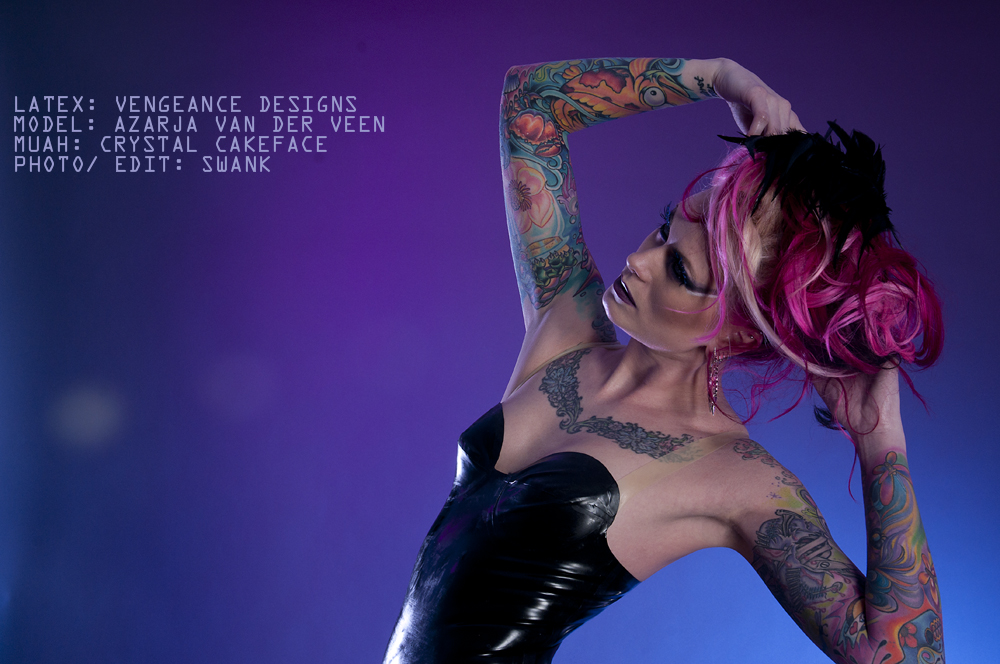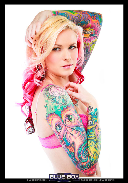 Azarja has the personality and experience to go from artist to model and back again. She continues to expand her ever-growing portfolio and can always be seen enjoying the nightlife at parties, concerts and tattoo events.