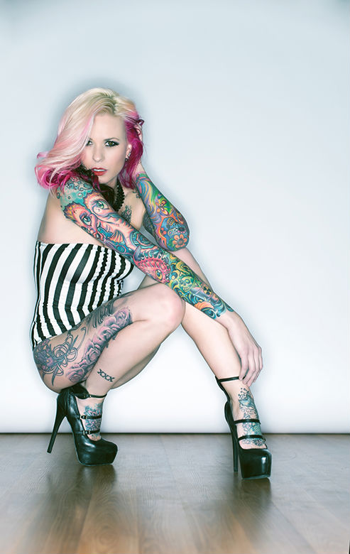 She has built an impressive body of work over the past 11 years and continues to gain recognition in both tattoo culture and alternative modeling.
