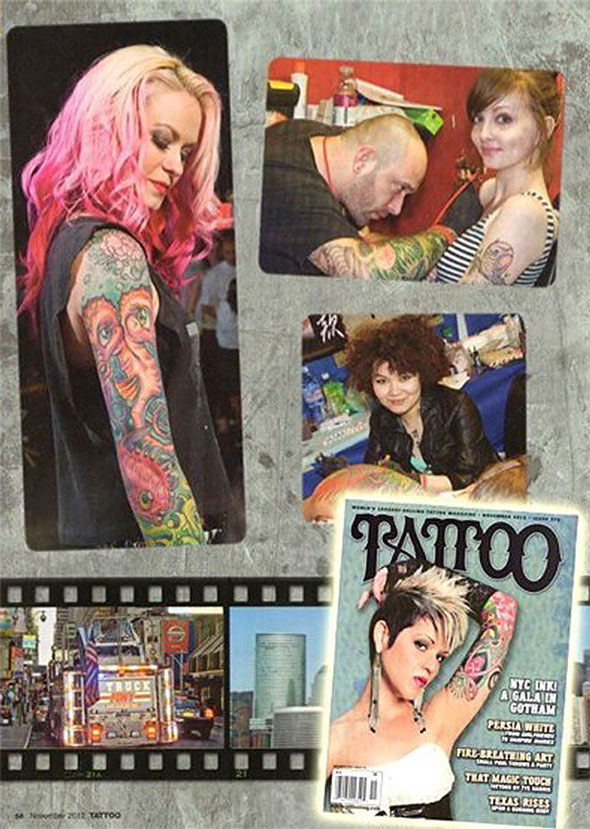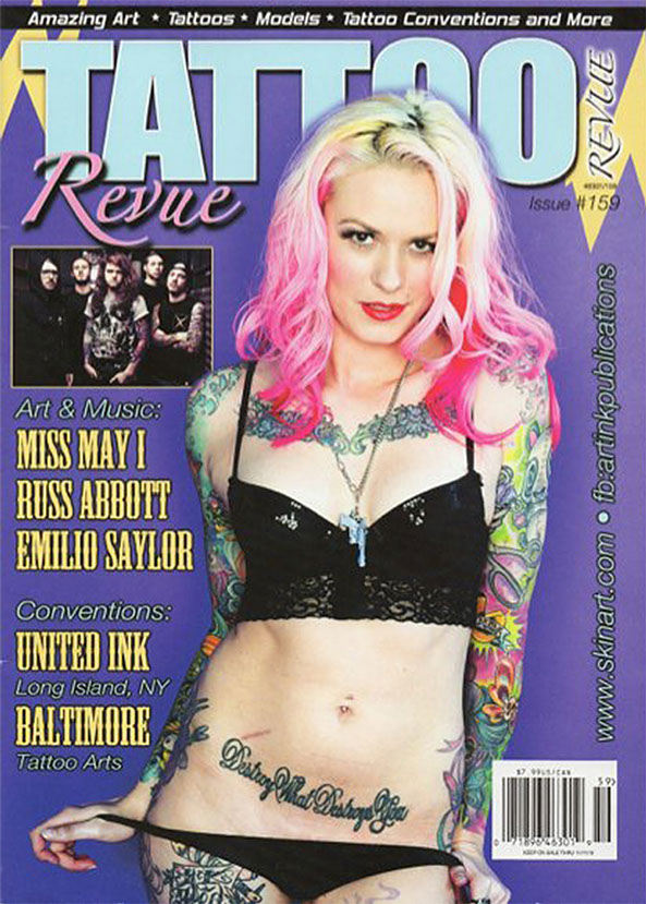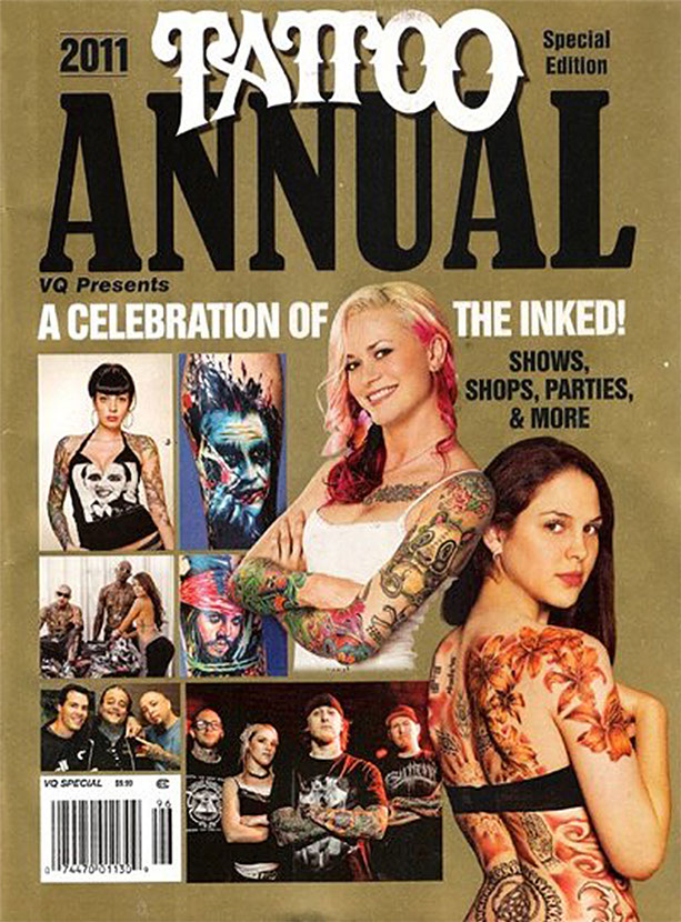 Over the years she has become a staple in the tattoo scene: gracing covers of some of the most influential magazines and frequently working events, such as International Tattoo Art and the annual New York City Tattoo Convention.
